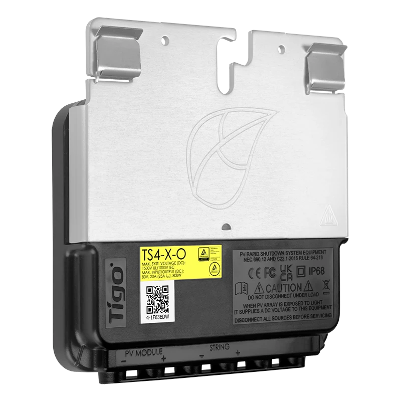El聽Tigo TS4-X-O聽es un dispositivo MLPE de 煤ltima generaci贸n dise帽ado para聽m贸dulos fotovoltaicos de alta potencia y alta corriente, ofreciendo optimizaci贸n, monitorizaci贸n y apagado r谩pido a nivel de m贸dulo. Con una potencia nominal de hasta聽800 W聽y una corriente ISC de聽25 A, es la soluci贸n ideal para instalaciones modernas que utilizan los m贸dulos m谩s exigentes del mercado.